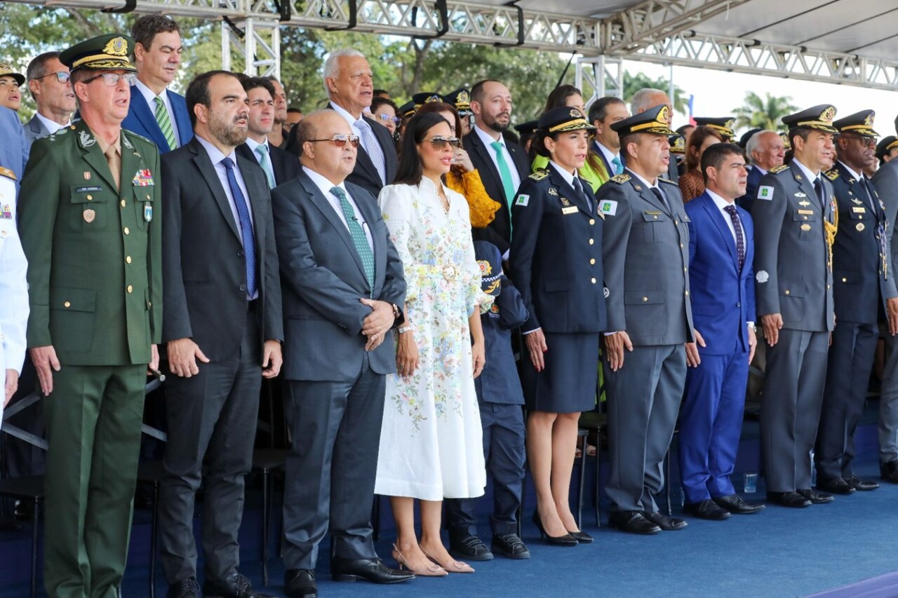 Em clima de comemoração e reverência aos símbolos nacionais, o público acompanhou o hasteamento da nova bandeira ao som do Hino Nacional. Estiveram presentes autoridades locais, entre elas o governador Ibaneis Rocha, que afirmou que a solenidade representa “nosso amor à pátria e nosso amor por Brasília”. A vice-governadora Celina Leão também discursou, destacando que o ato reforça o compromisso com o bem coletivo.